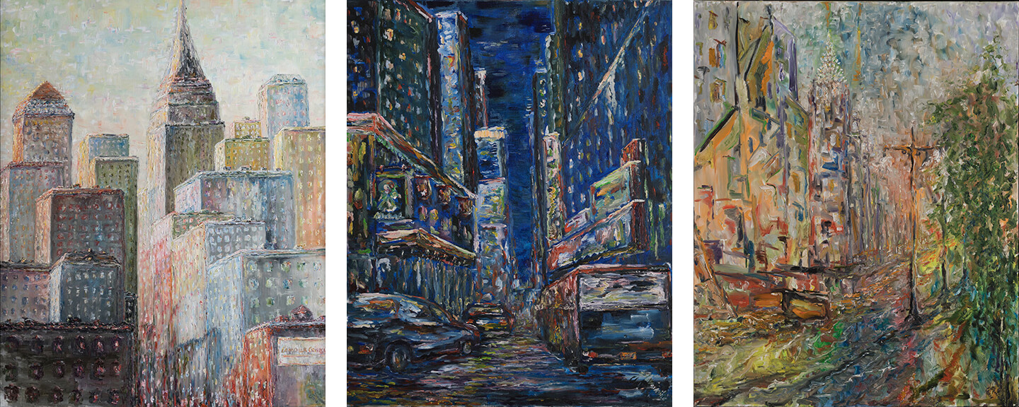 Christopher’s work is defined by its bold technique and expressive use of color. His paintings, exclusively oil on canvas, often exhibit a strong Impasto style, rich in texture and depth, with hints of Alla Prima and Blending techniques layered throughout. He prefers to work with oil paint—not only for its richness and flexibility, but also because its slow drying time suits his thoughtful approach to composition. In a way, oil seemed like the perfect match for Slowinski—both in name and in nature—allowing him the time to reflect, revise, and truly connect with the canvas. Influenced by the Fat Over Lean principle, his approach gives life to vivid compositions that pulse with energy. His interpretations of New York—raw, colorful, and emotionally charged—position him as a unique voice in the Modern Art scene. Through his distinctive style, Christopher continues to contribute meaningfully to contemporary art, painting with the same passion that first sparked his love for the craft.